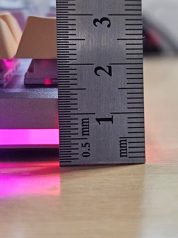 이 키보드의 앞쪽 높이가 대략 14-15mm 정도입니다. 15mm 높이를 가진 팜레스트를 주문했습니다. 주문하고 보니, 14mm가 맞는 높이 같습니다. 하지만 14mm는 기성품을 찾을 수가 없어 주문제작해야 하는 높이입니다. 그 정도 비용을 투자할만한 가치가 있는지는 잘 모르겠습니다.