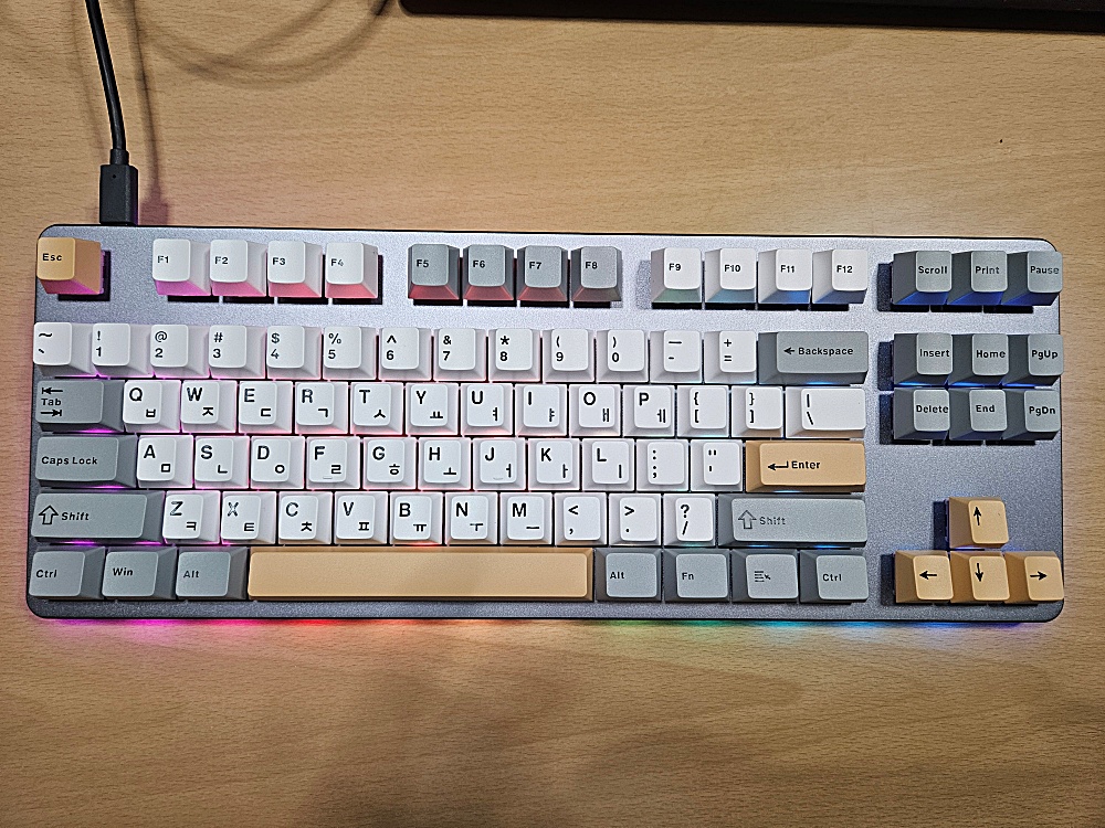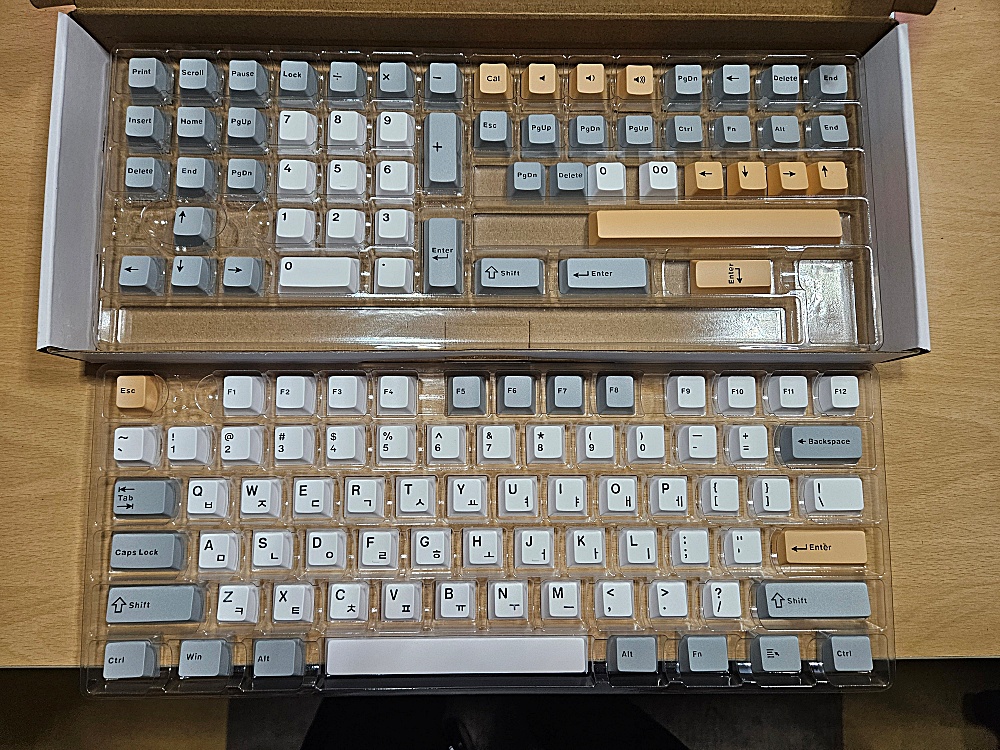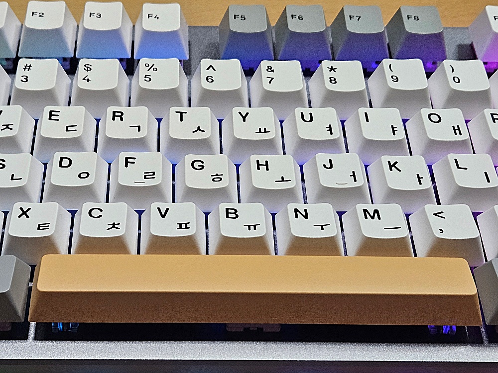 이제 키캡 순서입니다. 이 키캡은 몬스타 가츠의 사막여우라는 키캡입니다. PBT 이중사출 방식의 키캡입니다. 은은하면서도 예쁜 색상이라는 느낌입니다.