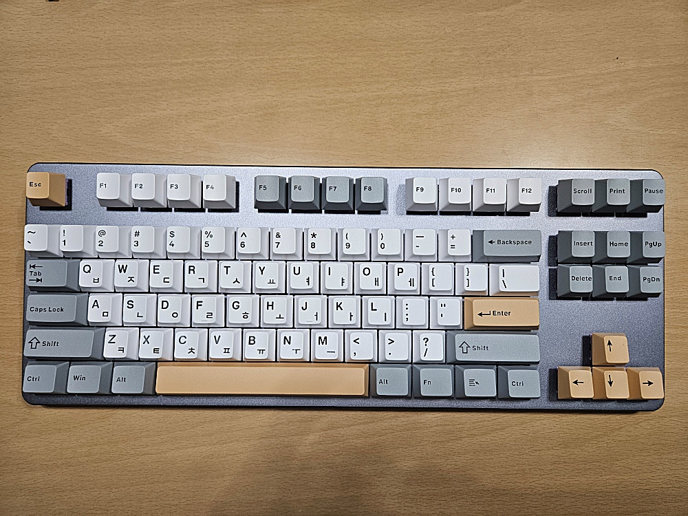 하지만 저 '독거미'는 마음에 들지 않았습니다. 왜냐하면 키 배열이 텐키리스가 아니었기 때문입니다. 저런 유형의 배열을 저는 그다지 좋아하지 않습니다. 그래서 표준적인 텐키리스를 지원하면서 요즘 유행하는 리니어 스위치를 적용할 수 있는 제품을 찾아보았고, 그렇게 해서 최종적으로 선택한 것은 Drop의 CTRL V2 베어본 제품이었습니다. 여기에 요즘 인기를 얻고 있는 리니어 스위치와 나름 예쁘다고 생각한 키캡을 추가로 구매하여 키보드를 완성하기로 결정했습니다.
