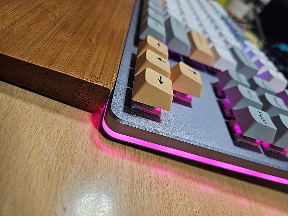 이 키보드는 제가 평소에 선호하는 옵션 대부분을 만족시키는 제품입니다. 텐키리스, 플로팅 키, 알루미늄 하우징 등의 옵션이 그렇습니다. 조금 애매한 것은 무게입니다. 지금보다 조금 더 묵직했으면 더 좋았을 것 같다는 생각이 듭니다. 그리고 무선은 오히려 시간이 지날수록 불필요하다는 생각이 듭니다. 예전에는 책상 위에 선을 다 없애려는 생각이 강했는데 요즘은 오히려 배터리의 존재가 키보드의 단점일 수도 있겠다는 생각마저 들 정도로 저에게 있어 무선이란 옵션의 중요성이 낮아졌습니다.